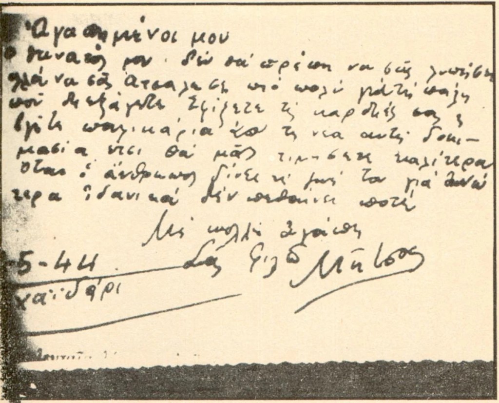 Θανάση μην ξεχνάς ποτέ πως είσαι Έλληνας κρατούμενος και εξυπηρετείς Έλληνες στρατιώτες. Να είσαι πάντα καλός μαζί τους. Στο πρόσωπό σου τους αποχαιρετώ όλους